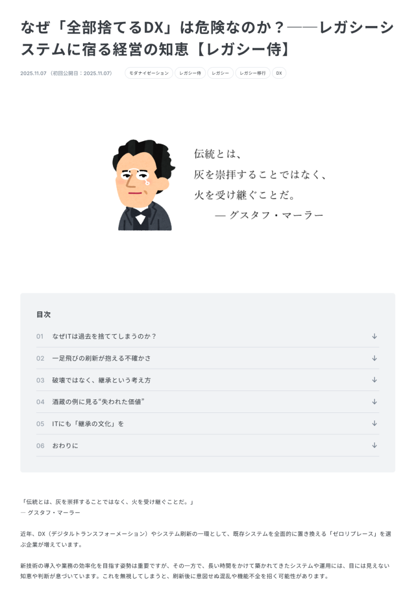 今回のコラムは、DX時代のシステム再構築における、老朽化システムの持つ”暗黙知”の重要性についてです。