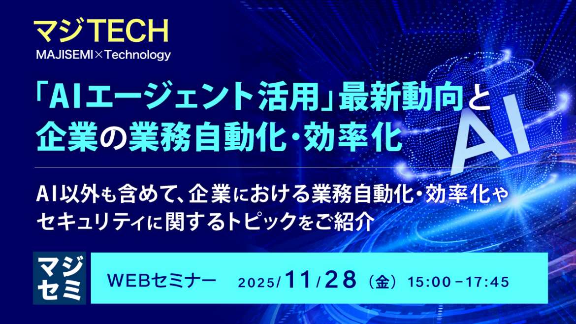 ITリノベーションとマイグレーションを事業展開する システムズは、来る 2025年11月28日(金)に、マジセミ主催により開催されるオンラインイベント マジTECH「「AIエージェント活用」最新動向と、企業の業務自動化・効率化」にて、スポンサーセッションに登壇します。