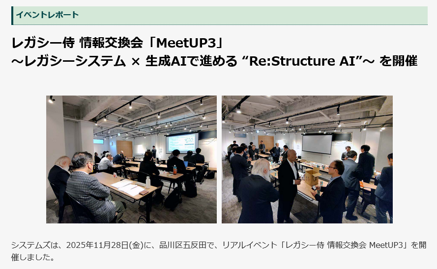 2025年11月28日開催、「第3回 レガシー侍 情報交換会 MeetUP3」開催レポートはこちらから →→→
