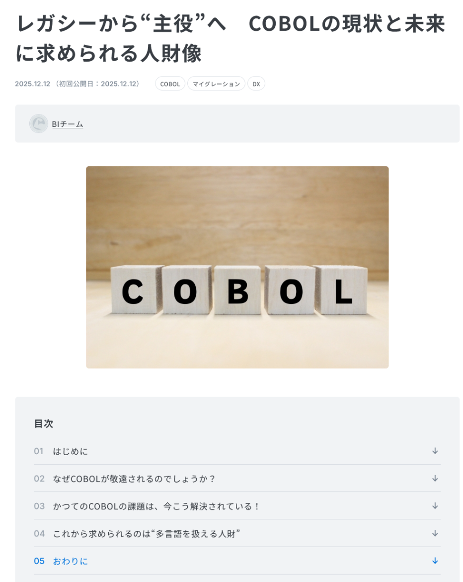 本コラムは、連載中の「COBOL」関連コラム最新記事になります。