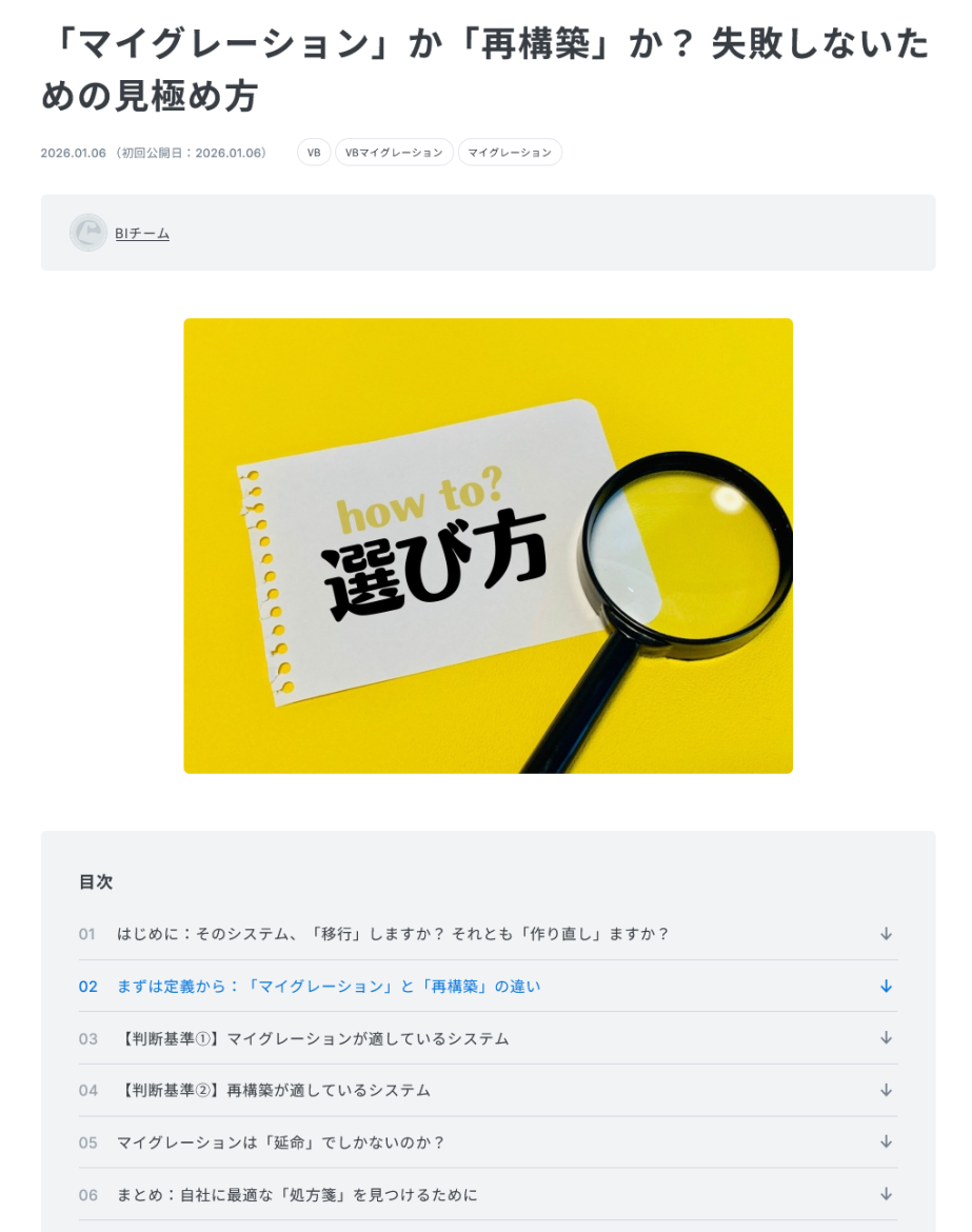 システムズのオウンドメディア、Techブログに掲載中の技術コラムから、最新コラムタイトルとリンク先URLを、マイグレーションポータルサイト内のマイグレーション コラム一覧に、追加・更新いたしました。